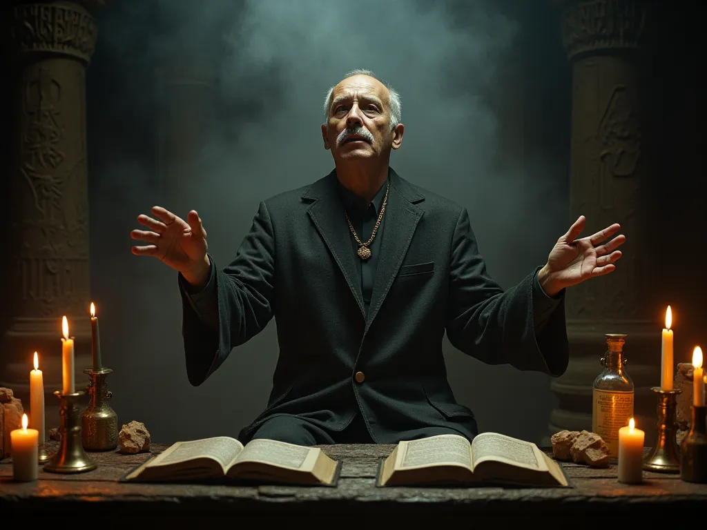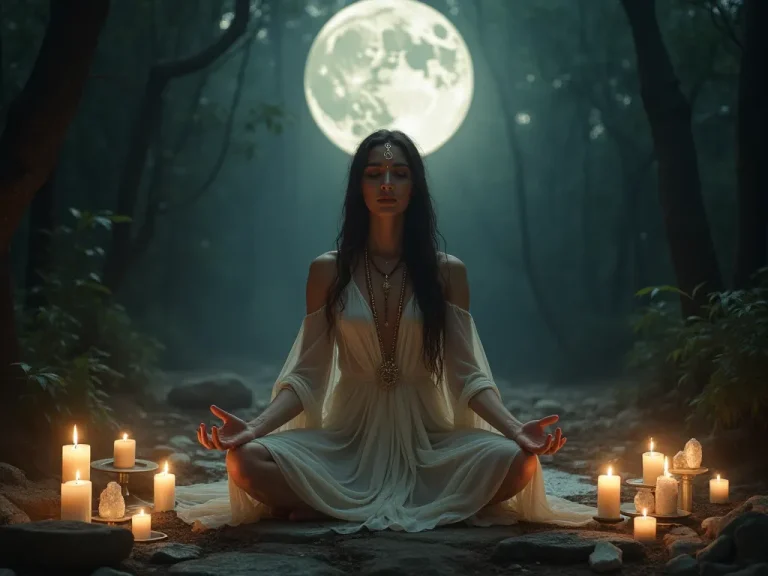 En un oscuro rincón de una antigua cabaña, bajo el manto de la noche estrellada, una figura envuelta en un misticismo palpable se sienta frente a un espejo negro. La…